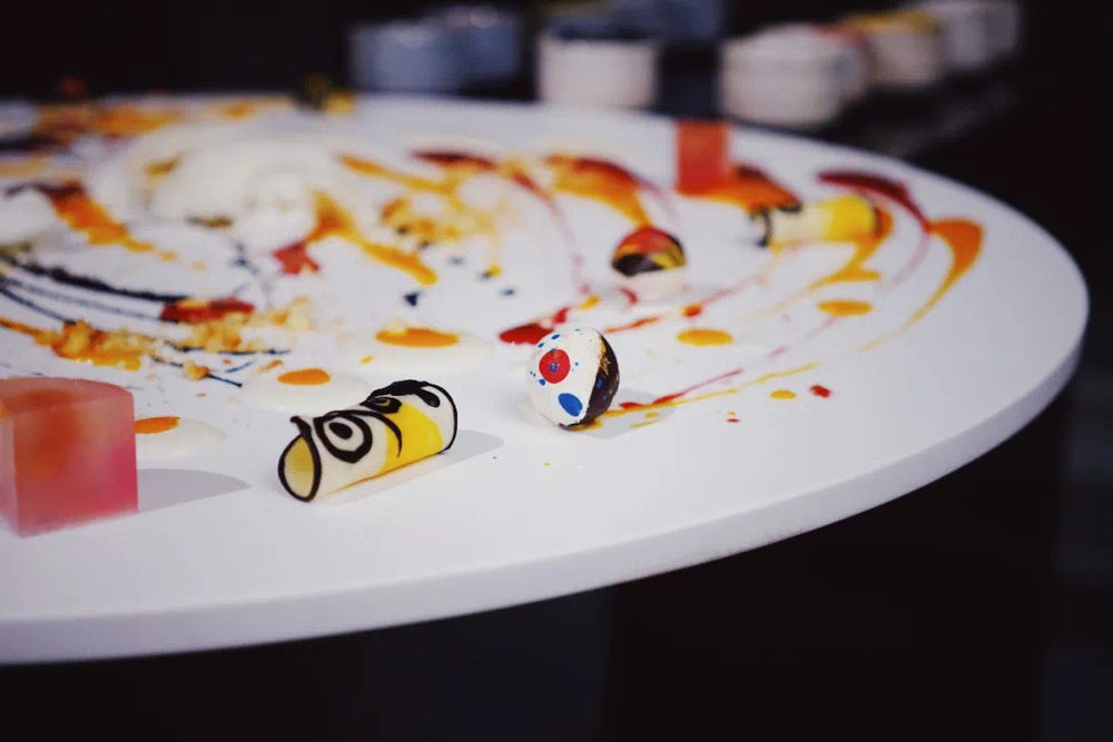 Matt surfaces take the lead, shaping tabletops, wall panels, and shelving, while our Snow Ace solid-core compact elevates the presentation of their fine-dining dishes.