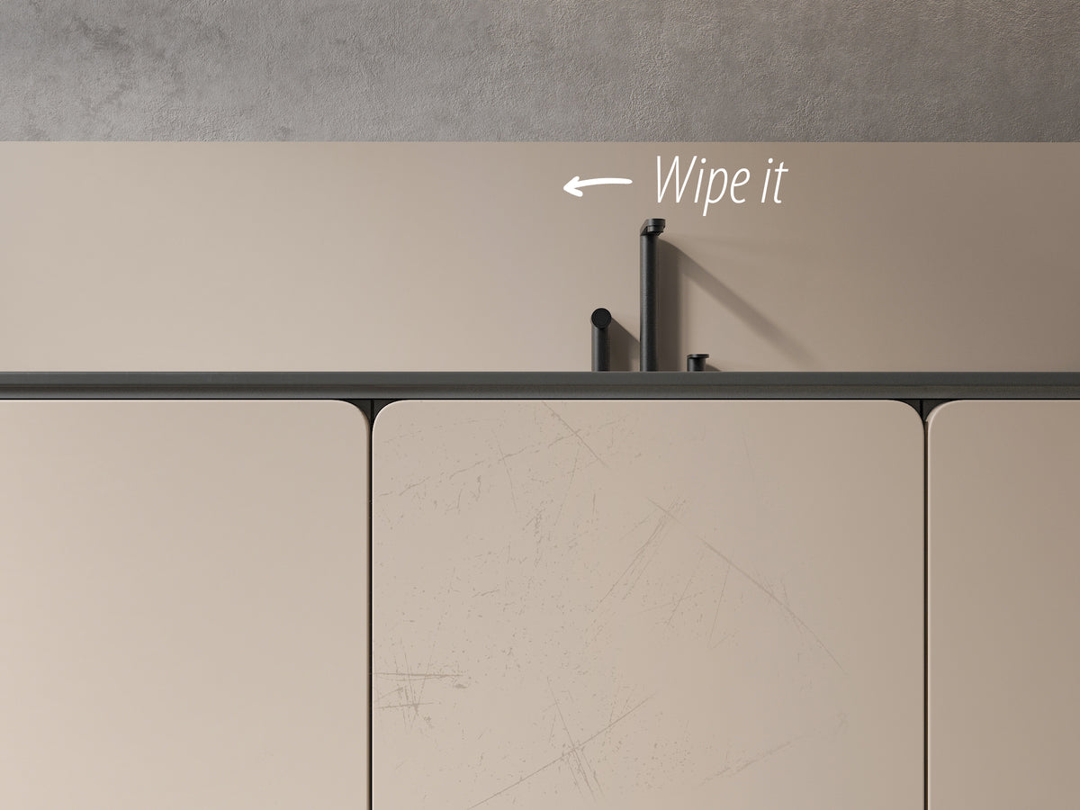 The ultra-matt surface is cured using Electric Beam Curing (EBC) nanotechnology, giving it the ability to self-repair small scratches. A gentle touch of heat, even body warmth, restores the surface to its original smoothness.